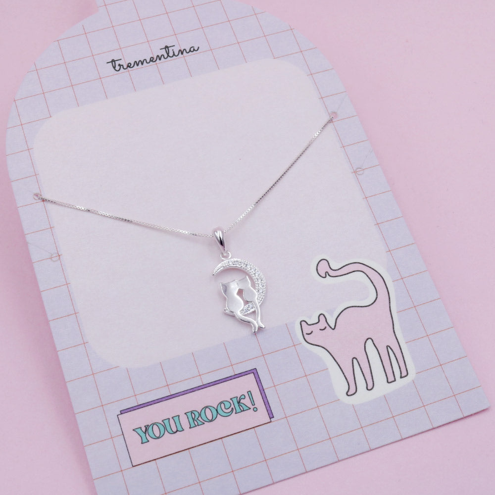 Este collar de pareja de gatos en Plata de Ley 925 es una joya delicada y llena de significado. Su diseño representa dos gatos abrazados bajo una luna con circones, simbolizando compañía, amor y conexión.