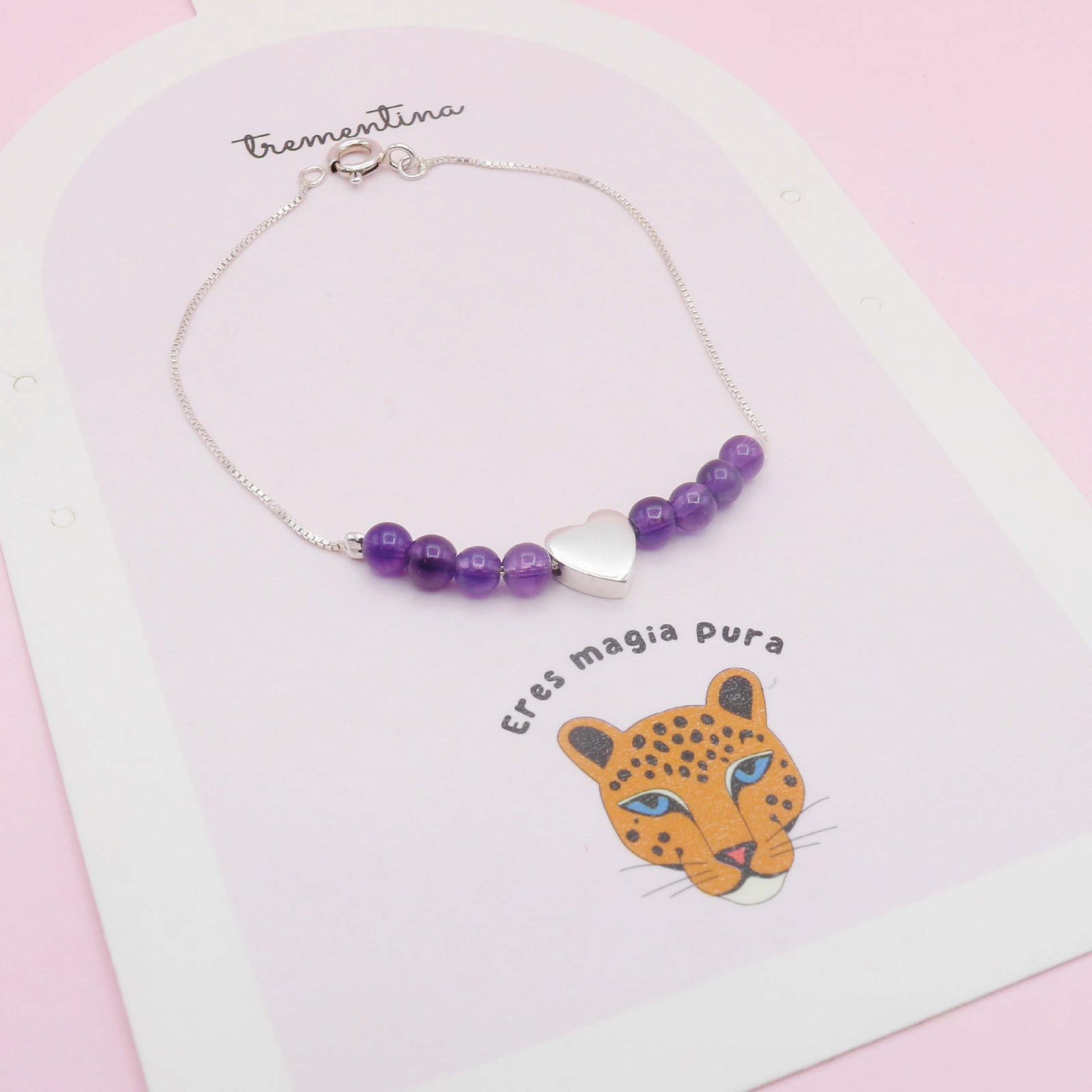 Pulsera De Plata Corazón Amatista