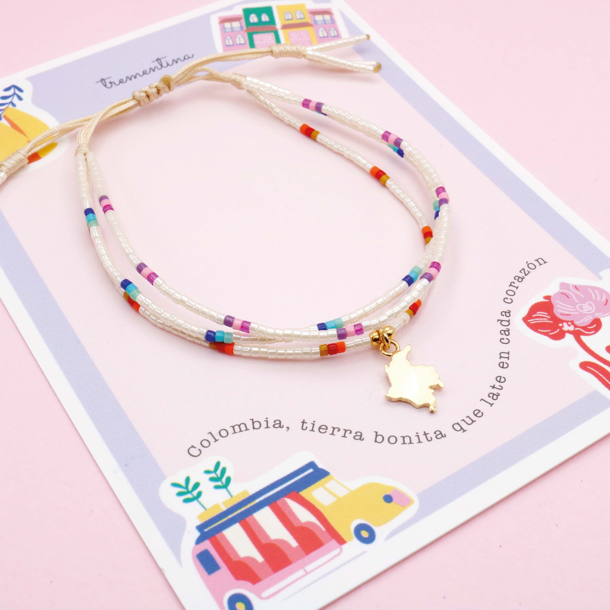 - Pulsera en hilo con mostacilla miyuki.